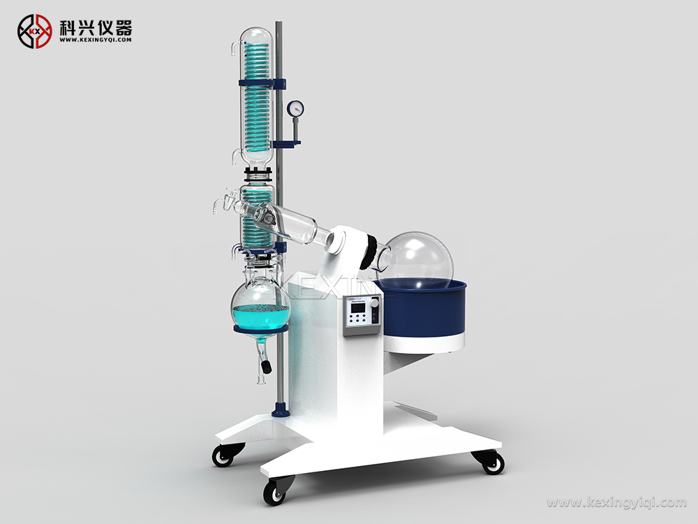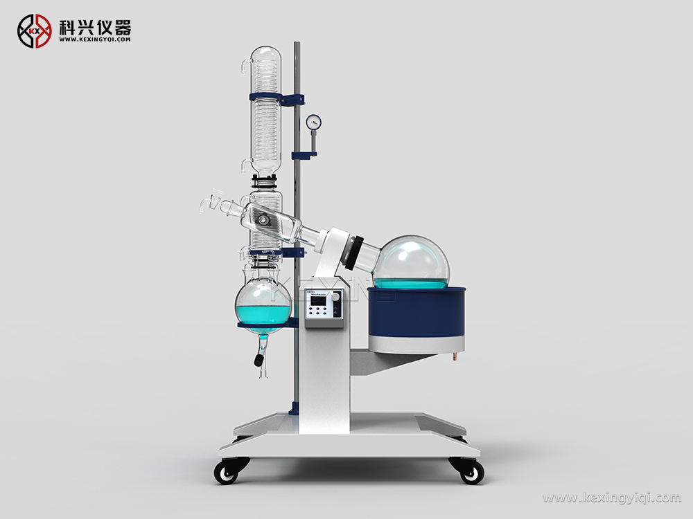 旋轉蒸發儀主要用于醫藥、化工和生物制藥等行業的食品等領域的中試,進行濃縮、結晶、干燥、分離及溶媒回收。有大容量、大口徑旋轉蒸發瓶,置于水浴中,邊旋轉邊加熱,使溶液高效擴散蒸發。產品可與循環水式多用真空泵、隔膜真空泵、低溫循環(真空)泵,循環冷卻器,恒溫循環器,低溫冷卻液循環泵等配套組成系統裝置。其原理為在真空條件下,恒溫加熱,使旋轉瓶恒速旋轉,物料在瓶壁形成大面積薄膜,高效蒸發。溶媒蒸氣經高效玻璃冷凝器冷卻,回收于收集瓶中,大大提高蒸發效率。特別適用對高溫容易分解變性的生物制品的濃縮提純。
